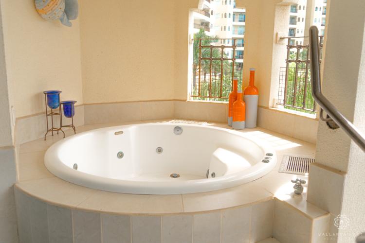 Bay View Grand – Exclusive 2-Bedroom Oceanfront Unit with Private Jacuzzi Experience true luxury by the ocean in this sophisticated residence located in Bay View Grand, one of the most prestigious developments in Puerto Vallarta. Designed for comfort, spaciousness, and an elevated lifestyle, this unit offers everything you need for unforgettable stays. Main Features 2 Spacious Bedrooms Master Bedroom: King-size bed, large windows, and an elegant, serene atmosphere. Second Bedroom: Also equipped with a king-size bed for maximum comfort. Spectacular Balcony with Private Jacuzzi Enjoy your own jacuzzi overlooking breathtaking panoramic views of the bay—perfect for relaxing sunsets and peaceful moments. Modern and Sophisticated Design Featuring luxury finishes, contemporary décor, and a layout designed to maximize natural light and comfort. Open-Concept Living and Dining Area Spacious, stylish, and seamlessly connected to the terrace for an ideal indoor-outdoor living experience. Fully Equipped Kitchen Includes granite countertops, high-quality appliances, and everything needed for long or short stays. Development Amenities Infinity pools facing the ocean Direct beach access Fully equipped fitness center Spa and relaxation areas Tennis courts 24/7 security Parking Beautifully maintained gardens Perfect For… Long vacations, rental investment, or anyone seeking the ultimate comfort of oceanfront living.